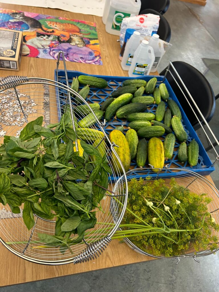 On the morning of the cooking circle, the gardening team, consisting of community members both young and old, harvested the cucumbers, dill, and garlic from the community garden in town. This collaborative effort set the stage for the evening’s activities, reinforcing the connection between the land and the food we enjoy. The community garden is more than just a source of fresh produce; it is a foundational aspect of the community’s food system. By growing a variety of vegetables and herbs, the community is able to enhance its food security, reducing reliance on external sources and ensuring a steady supply of nutritious food. The garden also serves as an educational resource, teaching valuable skills in gardening and food preservation to all ages.