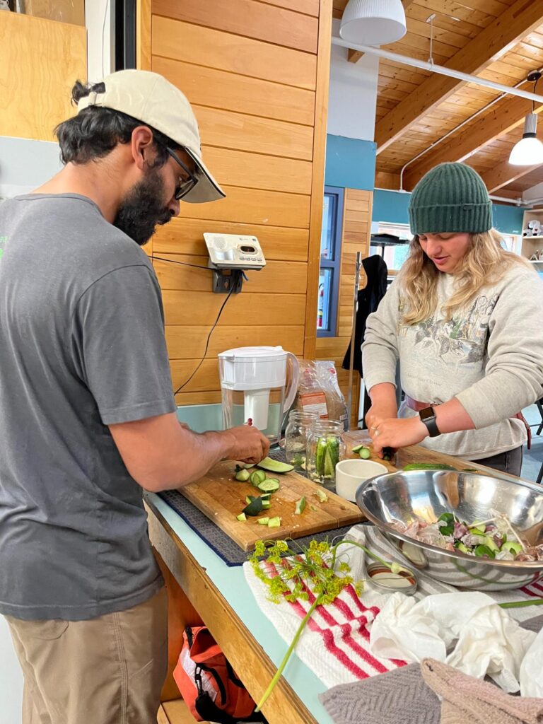 Recently, the community of Sambaa K’e First Nation (SKFN) came together for a hands-on pickling session as part of a cooking circle initiative. Cooking circles are community-driven efforts that bring people together to grow, share, and preserve local food. This particular event was organized by Julian, the Environment Coordinator for SKFN (see Julian’ssocials below!) and was a great opportunity to engage in a shared activity while making use of the fresh produce from the community garden.